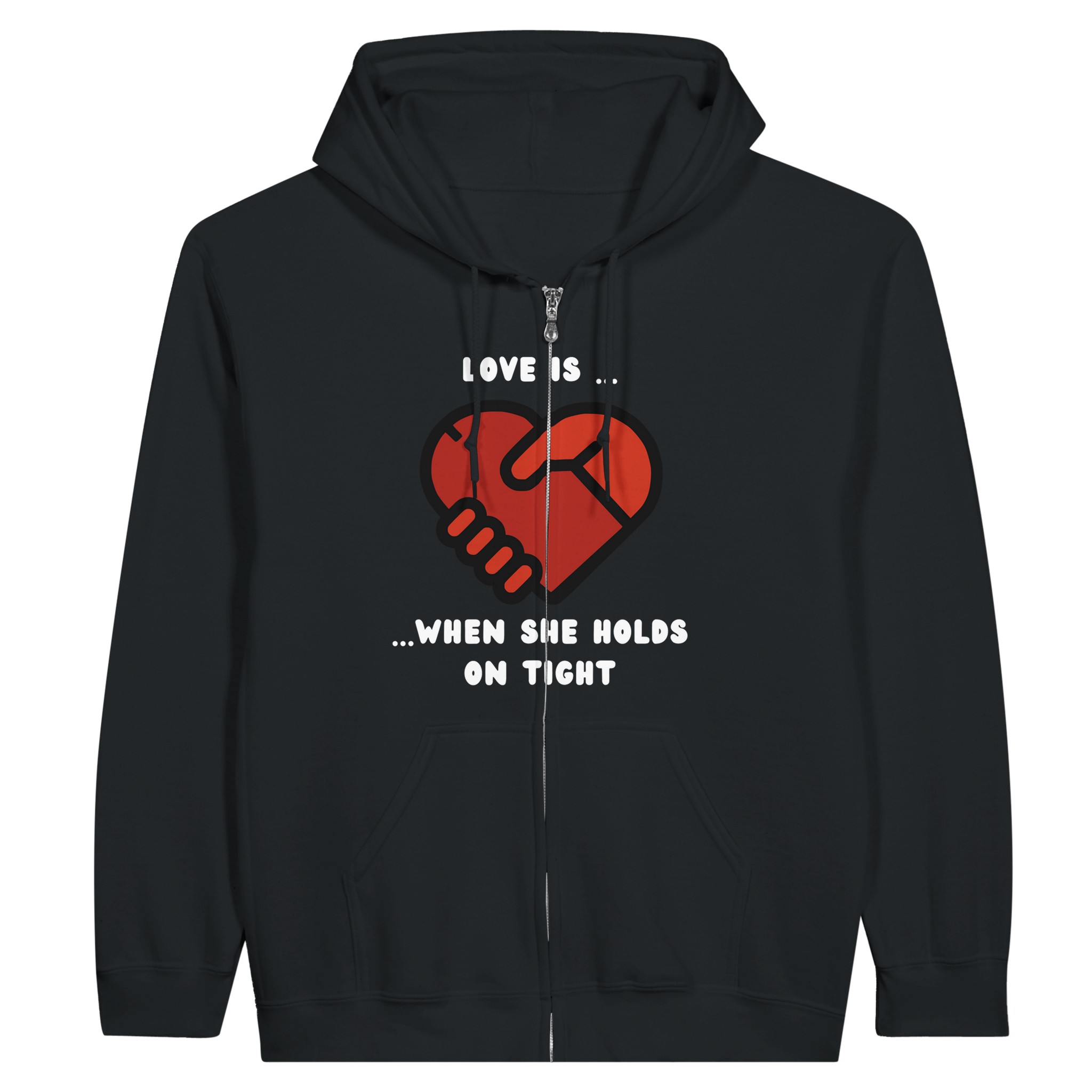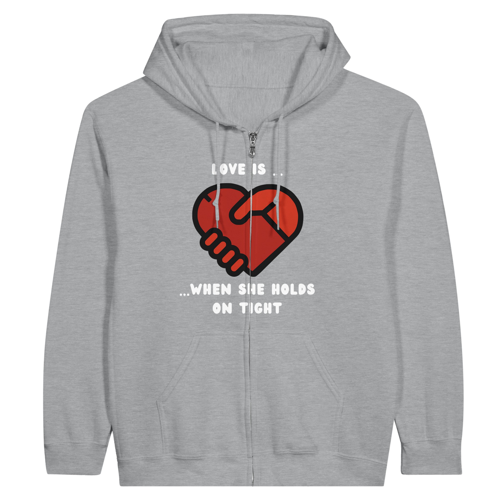 Be the first to review “Love is when she holds on tight Classic Unisex Zip Hoodie”